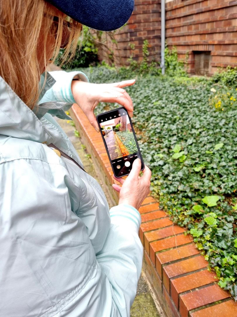 Bei den Foto-Spaziergängen in Limmer und Ricklingen mit der passionierten Hobbyfotografin Christine Herling gab es viel zu entdecken: zarte Frühblüher, Moose auf einer Mauer, kleine Pilze im Gras – tolle Fotomotive in direkter Umgebung, die man häufig erst auf den zweiten Blick erkennt. Neben der Suche nach reizvollen Bildern und Perspektiven gab Christine Herling den Teilnehmenden viele Tipps und Anregungen, um mehr aus ihrer Handyfotografie herauszuholen, etwa das Handy gerade zu halten und dicht an die Motive heranzugehen. Um alles noch mal in Ruhe nachlesen zu können, erhielten alle Teilnehmenden ein Infopapier mit den wichtigsten Hinweisen.
